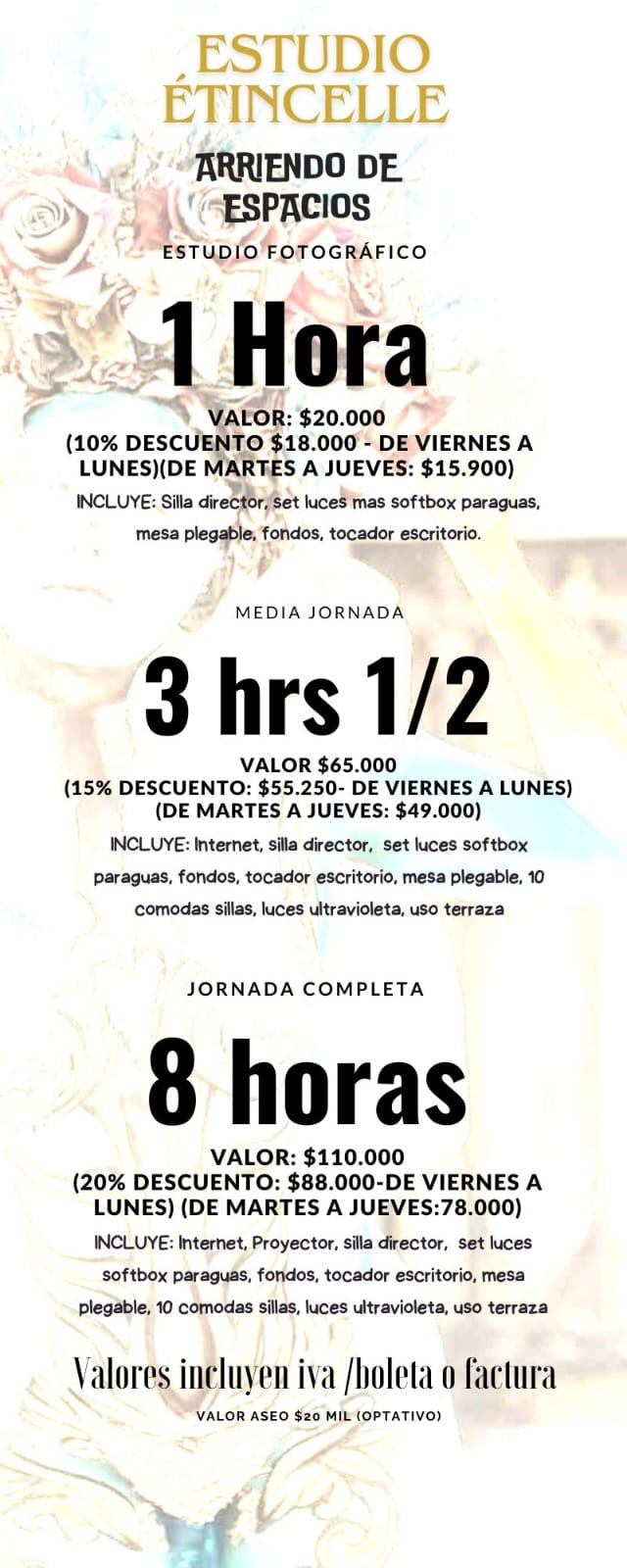 ARRIENDO POR 1 HORA - MEDIA JORNADA 3 HRS 1/2 - JORNADA COMPLETA 8 HRS