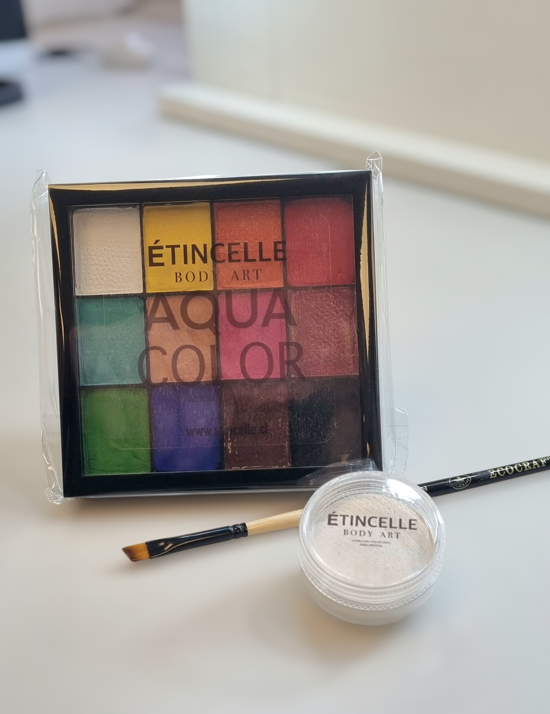 Maquillaje al agua hipoalergénico de acabado mate, alta pigmentación, fijación y velocidad de aplicación. Pintura corporal y facial en seco de activación con agua. Ofrece un excelente rendimiento, durabilidad, elasticidad (no se craquela), rápido secado y aplicación de 1 pincelada.